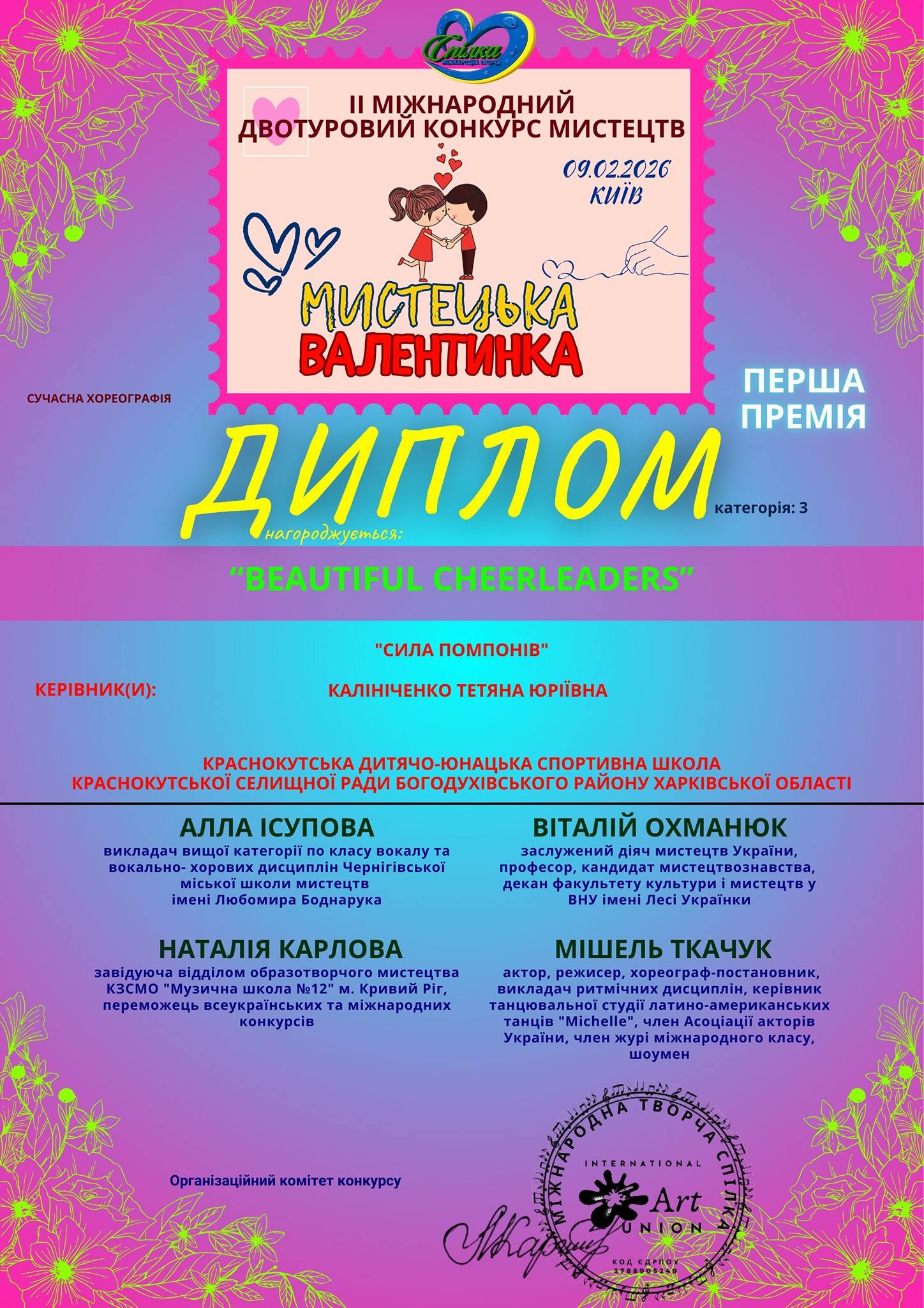 Щирі вітання команді “BEAUTIFUL CHEERLEADERS” Краснокутської дитячо-юнацької спортивної школи з ...